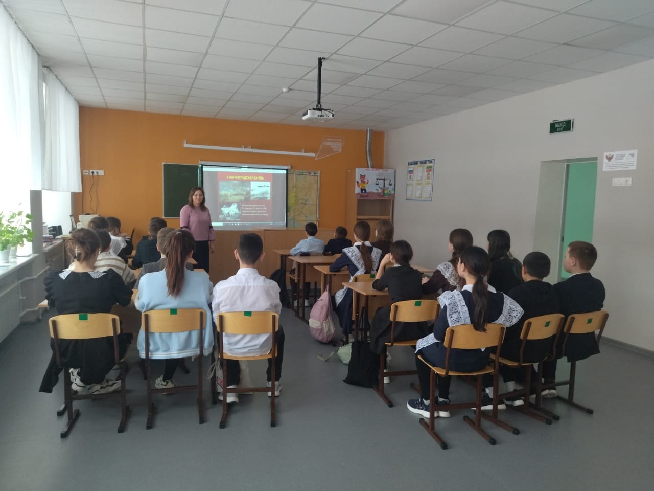 2 февральдә 5-10 сыйныф укучылары өчен Сталинград сугышында совет гаскәрләренең немец-фашист гаскәрләрен тар-мар итү көненә багышланган «Без истә тотачакбыз» батырлык дәресе уздырыла. Директорның тәрбия буенча киңәшчесе, тарих укытучысы дәресне күптән түгел генә сыйныф сәгатендә Ленинград блокадасы өзелүнең еллыгы турында сөйләүдән башладылар, ә бүген яңа дата – Сталинград сугышы. Дәрес барышында укучылар солдатларыбызның батырлыгы турында күп белделәр, Бөек сугышның тарихи һәйкәлләре белән таныштылар. Шулай ук Сталинград сугышының төп моментлары турында презентация күрсәтелде.