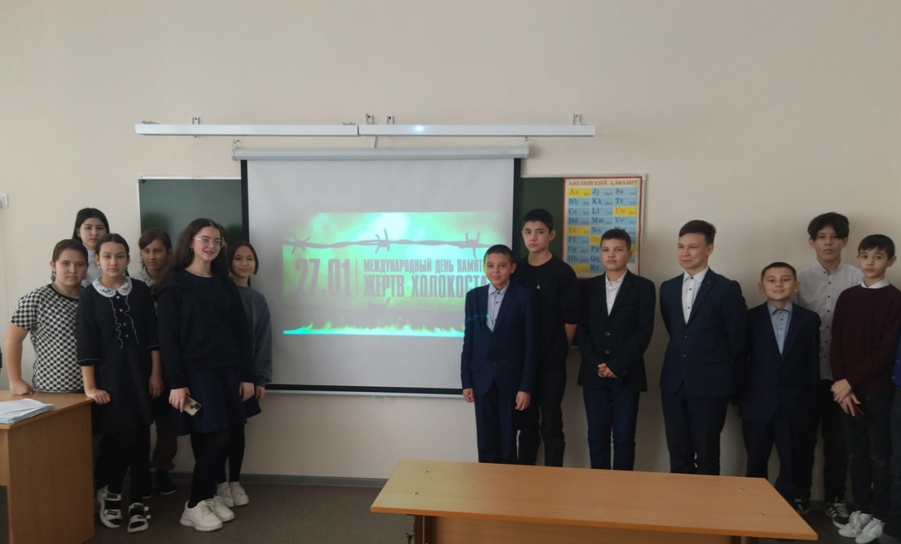 27 гыйнварда безнең мәктәптә Халыкара корбаннарны искә алу көненә - Холокост корбаннарын искә алу көненә - 27 гыйнварга багышланган чаралар узды. 1945 елда Совет гаскәрләре тарафыннан Освенцим нацист концентрацион лагерен азат итүне билгеләүче дата. 2005 елда бу көн БМО Генераль Ассамблеясы тарафыннан Халыкара Холокост корбаннарын искә алу көне буларак билгеләнгән. Бу истәлекле көнне бөтен дөнья нацистларның варварлык акцияләреннән зыян күргән корбаннар һәм Геройлар алдында башын иеп тора.