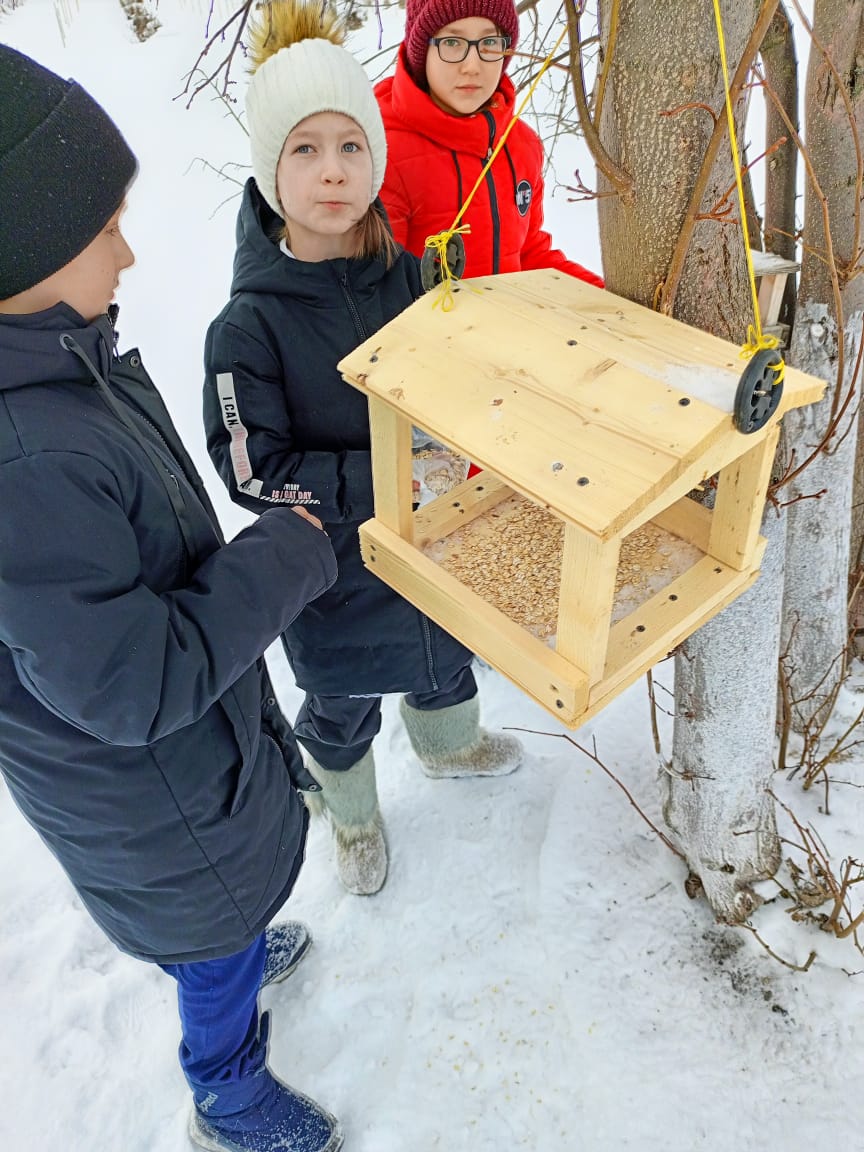 "Кышын кошларны ашатыгыз" Бөтенроссия акциясе күп кенә мәктәпләр өчен традиционга әверелде. Акция безнең канатлы дусларыбызга ярдәм күрсәтергә чакыра, аларга елның салкын вакытында ризык җитмәү, салкын һәм сыену урыны булмау сәбәпле бик авыр була. Күпләрнең кошларны акциядә катнашу өчен түгел, ә йөрәк чакыруы буенча ашатулары сөендерә.