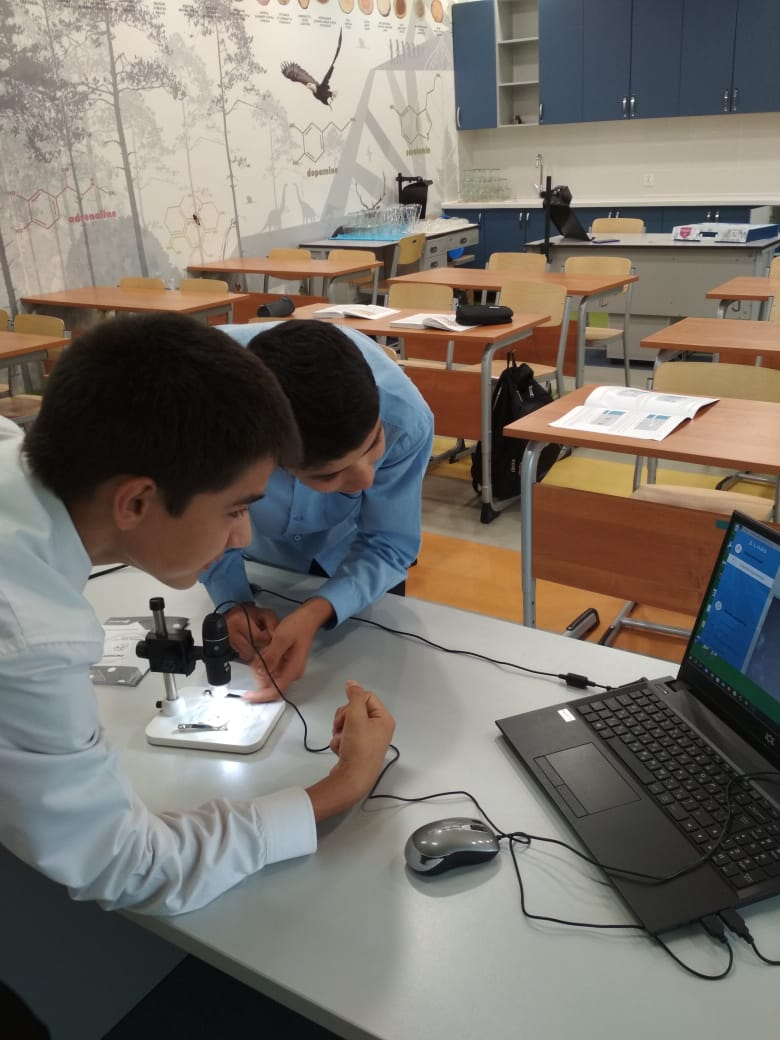 9 сентябрьдә 8 сыйныф укучылары биология дәресендә «Хайван тукымалары» лаборатория эшен башкардылар, анда «Үсеш ноктасы» үзәге базасында цифрлы микроскоп астында хайван тукымалары төркемнәрен карадылар. Микроскоп ярдәмендә серле һәм мавыктыргыч дөньяга чуму бара, анда күп яңа һәм кызыклы нәрсәләрне белергә мөмкин. Мәктәп укучылары, микроскоп ярдәмендә, барлык тереклекнең шулкадәр зәгыйфь булуын һәм шуңа күрә аларны чолгап алган һәр нәрсәгә бик сак карарга кирәклеген яхшырак аңлыйлар. Микроскоп микроскопик объектларның төзелешен тикшерү һәм анализлау өчен универсаль прибор булып тора. Укучыларга әйләнә-тирә дөнья объектларын һәм күренешләрен өйрәнү өчен прибор куллану, киңәйтү, укучыларны яңа заманча җиһазлар кулланып эксперименталь һәм проект эшчәнлегенә җәлеп итү мөмкинлекләрен күрсәтә.