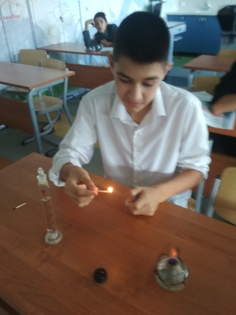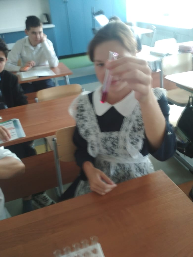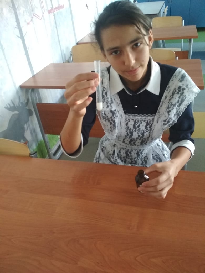 Үсеш ноктасында химик реакция билгеләрен билгеләү буенча практик эш узды. Укучылар химик реакцияләрнең барлык билгеләрен билгеләргә ярдәм итүче биш химик тәҗрибә үткәргәннәр.