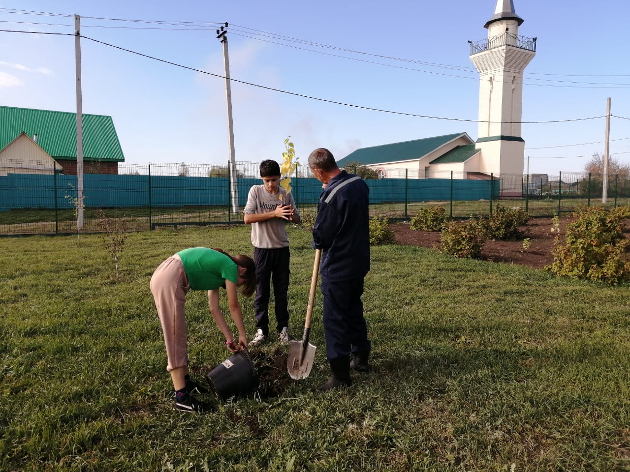 Мәктәптә «Агач утырт» экологик акциясе узды. Ел саен агач утырту акцияләре авылны яшелләндерүгә генә түгел, урманга сакчыл караш тәрбияләүгә дә өлеш кертә. Акция кысаларында без мәктәп территориясендә каен, карлыган, сирень үсентеләре утырттык. Бу дөньяда һәр кеше эз калдыра ала. Бу ул башкарган эш, ул ясаган иҗат. Кеше юк, ә аның утырткан агачы һаман яши. Кеше үзе турында истәлек калдыра ала. Нигә агач утыртмаска? Бу иң яхшы хәтер булачак. Буыннар алмашына, һәм агач ел саен яши, безне Яшел кием белән сөендерә.
