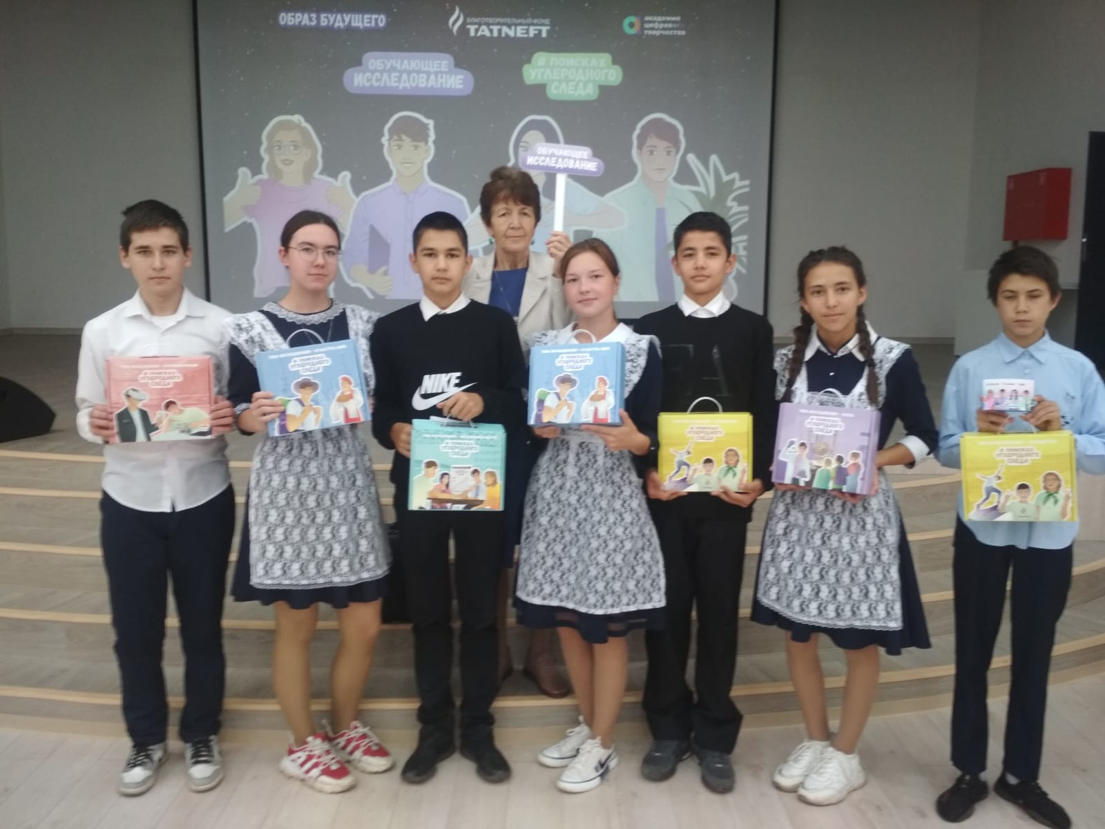 27 сентября учащиеся 8 класса нашей школы приняли участие в обучающее исследовании "В поисках углеродного следа". Данный формат работы создан Всероссийским образовательных проектом "Образ будущего" по инициативе "Татнефть". Учащиеся вместе с учителями научились анализировать и вести расчёты разумного энергосбережения и углеродной нейтральности. Полученные знания и умения помогут ребятам принимать эффективные и бережные решения в различных жизненных ситуациях по охране окружающей среды. Каждый участник получил углеродной чемоданчик, который содержит разнообразные инструменты для дальнейших исследований. Наши учащиеся успешно справились со всеми заданиями.