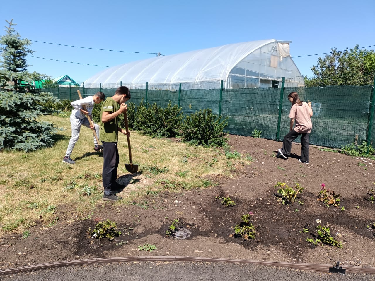 Мәктәп җәйләре-ял итү, сәяхәт, күңел ачу вакыты! 1 июньнән 1-10 сыйныф укучылары өчен җәйге хезмәт практикасы башланды. Мәктәп территориясендә чәчәк һәм яшелчә культуралары өчен участоклар бүленгән. Чәчәкле участокларда бер һәм күпьеллык үсемлекләр үсә. Бакчада кирәкле яшелчәләр: бәрәңге, кишер, суган һ.б. утыртылган. Укучыларның эшләре күп: түтәлләргә су сибәләр, чүп үләннәреннән чәчәкләрне һәм яшелчәләрне арындыралар, җирне йомшарталар.