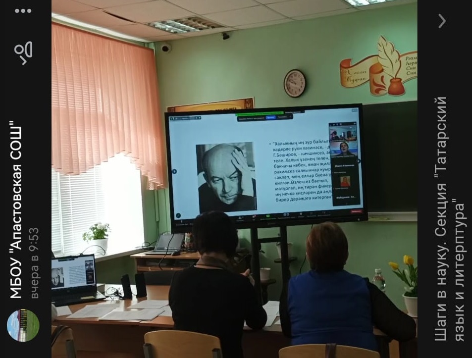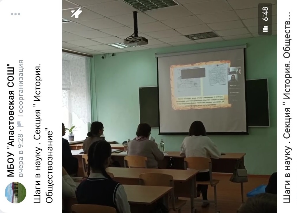 25 нче мартта Татарстан Республикасы Апас муниципаль районының «Аерым фәннәрне тирәнтен өйрәнүче Апас урта гомуми белем бирү мәктәбе» базасында «Фәнгә адымнар» Бөтенроссия фәнни-белем бирү конференциясе узды. Конференциядә безнең мәктәптән 7, 9 нчы сыйныф укучылары Вафина Альбина, Кадыйрова Ләйсән катнашты. Конференция нәтиҗәләре буенча Кадыйрова Ләйсән Татарстан Республикасы Мәгариф һәм фән министрлыгы дипломы белән, ә Вафина Альбина сертификат белән бүләкләнде.#ГодПедагогаНаставника