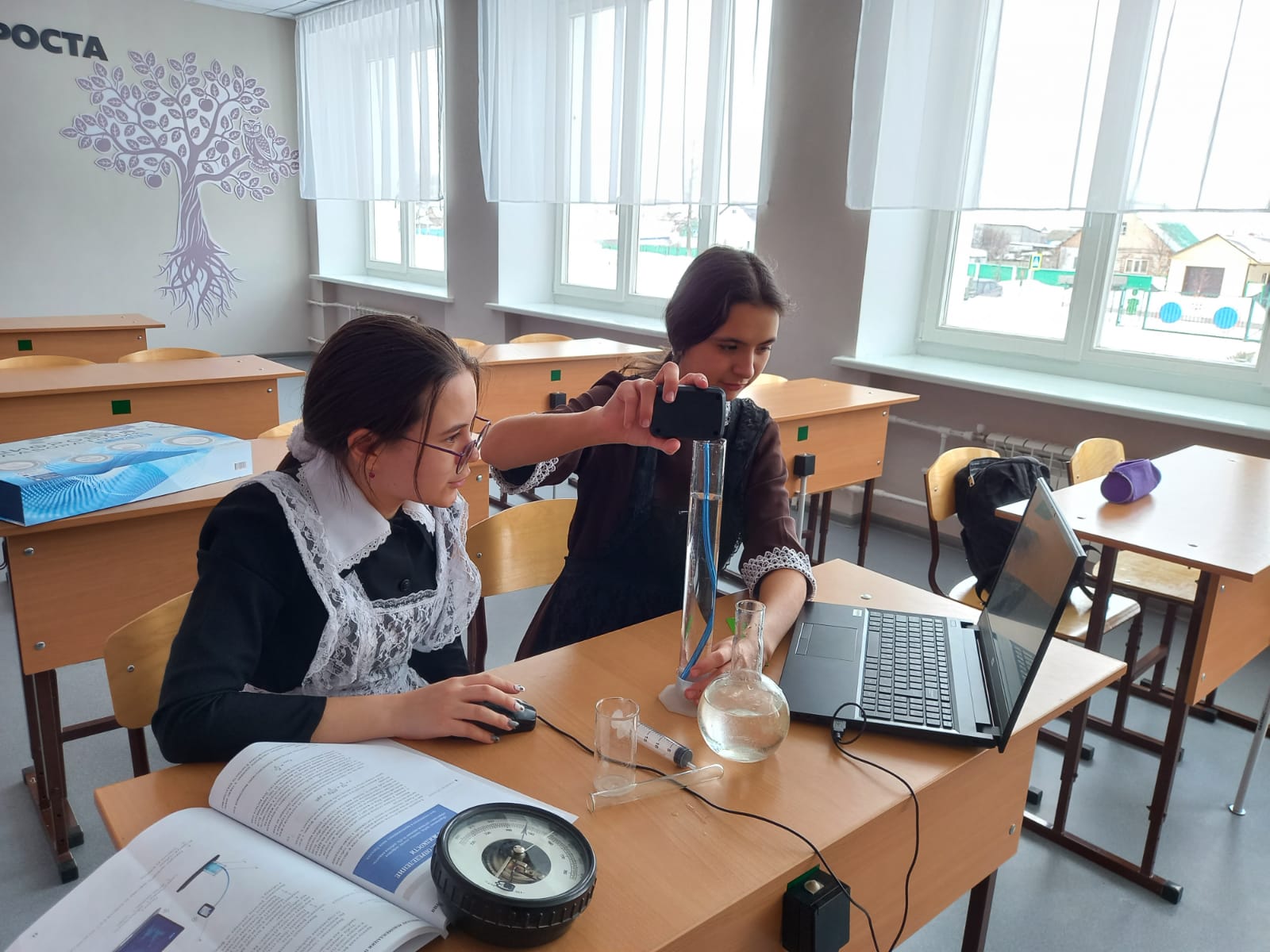 Авырлыксыз шартларда сыеклыкта гидростатик басым юк! «Үсеш ноктасы» үзәге санлы лабораториясе ярдәмендә 9а сыйныф укучылары «Паскаль Законы. Сыеклык басымын билгеләү» темасы буенча практик эш башкардылар. Балалар ял итүче сыеклыкта ике төрле статик басым барлыгына инандылар: гидростатик һәм тышкы.#ГодПедагогаНаставника