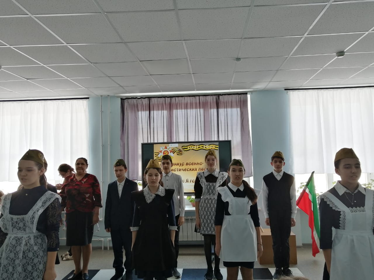 Хәзер яшьләргә хәрби-патриотик һәм гражданлык тәрбиясе бирүнең бай традицияләрен яңарту бик мөһим. 17 нче февральдә Бөтенроссия хәрби-патриотик тәрбия һәм оборона-массакүләм эш айлыгы кысаларында строй һәм җыр смотрының мәктәп этабы узды. Смотрда мәктәпнең барлык класслары да катнашты. Конкуренция бик югары иде. Болар барысы да жюри тарафыннан бәяләнде. Чара бер сулышта үтте. Иң көчлеләр җиңде. Бу бәйрәм чарасы барыбызга да яхшы кәеф, матур тәэсирләр бүләк итте.#ГодПедагогаНаставника