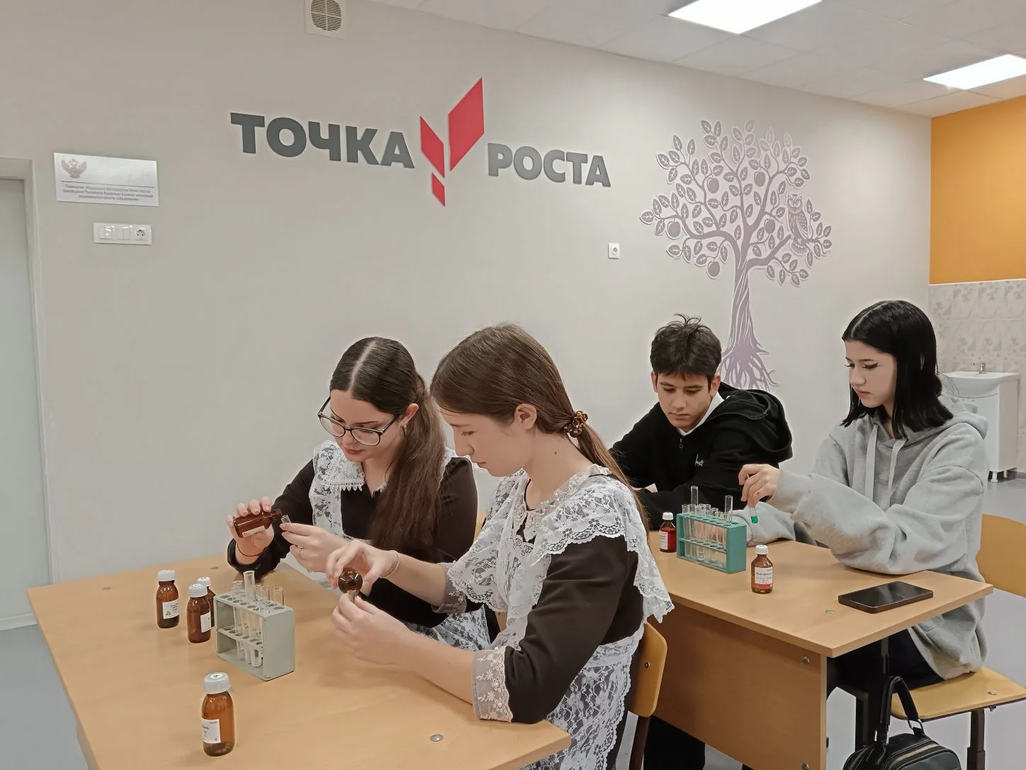 На базе центра образования цифрового и гуманитарного профилей "Точка роста" была проведена практическая работа, посвященная изучению галогенов/ "Үсеш ноктасы" цифрлы һәм гуманитар профильләр белем бирү үзәге базасында галогеннарны өйрәнүгә багышланган практик эш башкарылды 26.11.2025