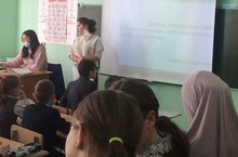 Активисты ШУС Хамзина Марьям и Сабирова Далия провели классный час на тему "Что такое доброта?" для учащихся начальных классов и поговорили о дружбе.