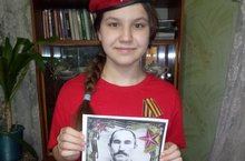 Ученица 6 класса Шакирова Зарина, активистка отряда "Юнармийцы", рассказывает биографию продеда Марданшина Музагита Марданшовича.