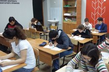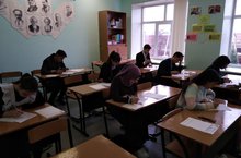 Учащиеся 10-11 классов пишут пробный по русскому языку.