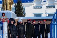 Акция "Спешите делать добро!" Тимуровская помощь в уборке территории памятника.