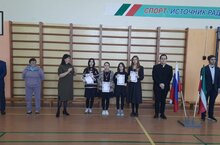 Еженедельная общешкольная линейка. 27 ноября в нашей школе как обычно началось с торжественной линейки и исполнения гимна Российской Федерации и Республики Татарстан! Право вносить флаг Российской Федерации и флаг Республики Татарстан сегодня было предоставлено ученикам 11 класса. Подвели итоги за неделю. На этой недели наградили грамотами команду девушек, которые участвовали на турнире по волейболу среди девушек сельских школ Азнакаевского муниципального района на кубок "ЫК-ТЫМЫТЫК" и заняли 1 место. Молодцы!!!