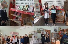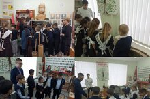 Руководитель школьного музея Вахитова А.Т. с учащимися 9 класса провели экскурсию для учащихся среднего звена.