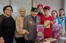 Волонтеры Победы и юнармейцы поздравили ветеранов тыла и детей войны с Великим праздником Победы и раздали памятные открытки от имени президента РТ Миннеханова Р.Н., главы Азнакаевского района Шайдуллина М.З и продовольственный пакет.