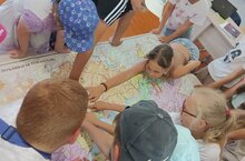 "Кояшкай" лагеренда тәрбияләнүче балалар карта аша кызыклы һәм гүзәл урыннарга сәяхәт калдылар, Татарстан шәһәрләре турында күп мәгълүмат тупладылар