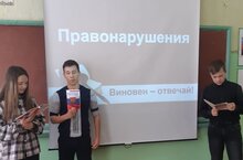 Тарих һәм җәмгыять белеме атналыгы кысаларында 9 класс укучылары белән "Кеше һәм закон" дигән темага эшлекле уен үтте