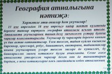 13 нче апрельдән 18 нче апрельгә кадәр мәктәп күләмендә беренче тапкыр виртуаль география атналыгы үткәрелде. Атналыкта укучыларның танып-белү эшчәнлеген үстерү буенча чаралар планлаштырылды. Укучылар бу чараларда беренче көннән үк бик актив катнаштылар. Кызыклы биремнәр, кроссворд, ребус, башваткыч, викторина, табышмаклар янына укучылар төзегән эшләр дә кушылгач, бу башкарылган эшнең нәтиҗәсе булуы ачыкланды. WhatsApp социаль челтәренең алдан ук төзелгән сыйныф группаларында атналыкта үткәрелгән чаралар белән көн дә таныштырып барылды. Материклар буенча сәяхәт укучыларда кызыксыну уятты. Кайбер укучылар көн дә үзләре теләк белдереп дәресләр башланганчы ук кроссворд, башваткыч ясап җибәрде, дәресләрдән соң тизрәк башлануын көтеп калып, үтелгән чараларда бик теләп катнаштылар. Менә алар: Халмурзаева Ралина, Карамов Роберт, Шакирова Ләйсән, Зиятдинова Рамина, Хисматов Самат, Ахмадишин Риназ, Ганиева Лиана, Федорова Арина, Нигматуллина Энҗе, Ахмадишин Рүзил, Камаев Илнар.