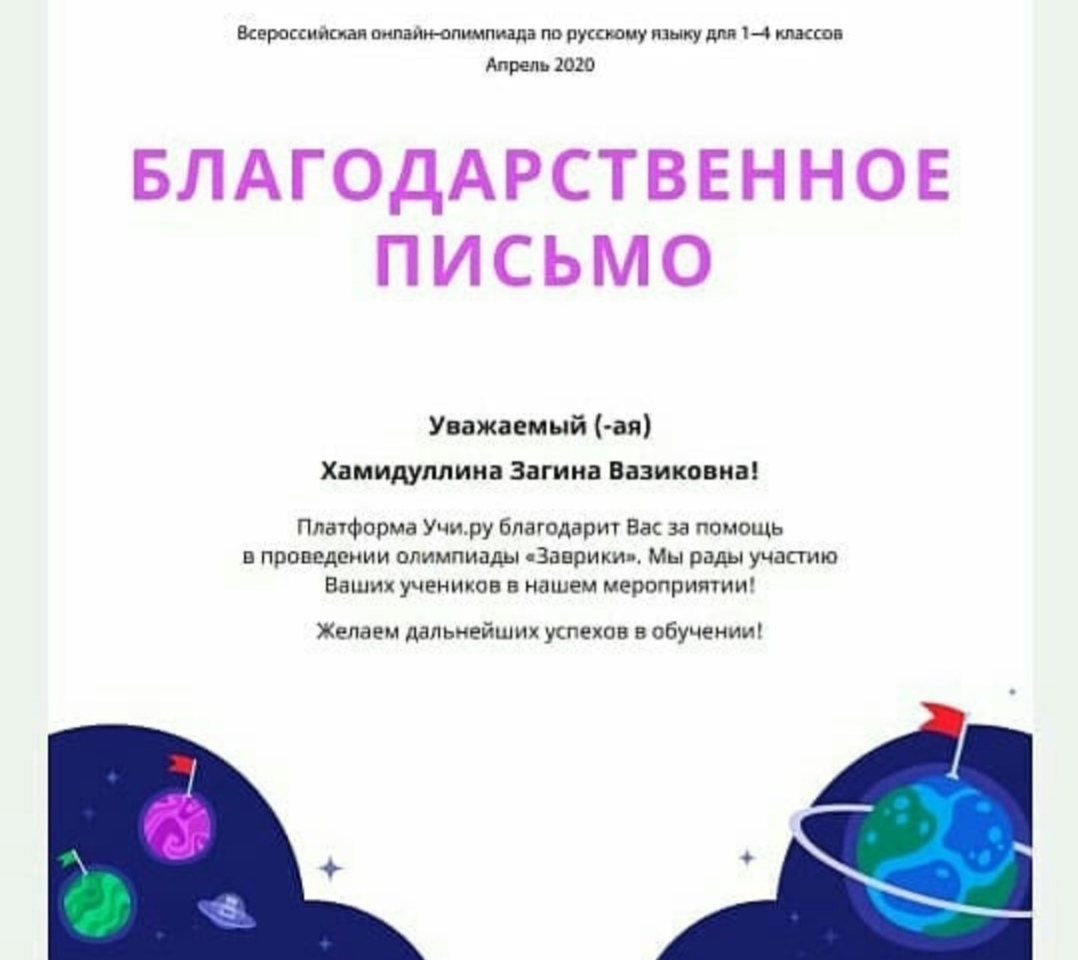 Һәр укучының кечкенә генә эше дә билгеләп барылды. Һәр бала мәктәпкә килмичә, үз өендә торып укыса да, бу атна без бергә кебек аралашып үтте. Атналык ошагандыр дип уйлыйм.