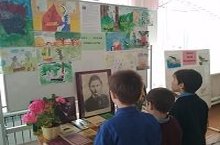 Мәктәп залында Г.Тукай иҗатына багышланган почмак булдырылды.Укучыларның шагыйрь әсәрләренә илюстрацияләре куелды.Шунда ук 2018 нче елга Г.Тукай исемендәге Дәүләт премиясенә тәкъдим ителүче каләм ияләренең китапларыннан күргәзмә оештырылды.
