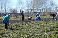 7-8 сыйныф кызлары җиләк күчереп утырталар.