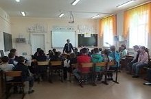 Полиция хезмәткәре Ләйлә Фәргатовна укучыларга җәйге каникул чорына бик яхшылап инструктаж үткәрде.