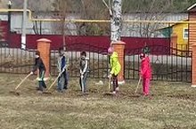 Укучылар бик тырышып мәктәп территориясен чистарттылар.