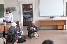 Тыл ветераннары белән очрашуда авылыбызның хөрмәтле кешесе - Рәфизия әби үзенең истәлекләре белән уртаклашты.