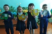 Кадерле әниләр! Беренче сыйныф укучылары сезне бәйрәм белән котлап, үз куллары белән ясаган бүләкләрен тапшыралар.