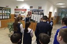 Укучылар мәктәптәге яңа стендлардагы мәгълүматлар белән танышуны дәвам итәләр. 8 нче сыйныфлар хәрби бурычларын үтәгәндә һәлак булган солдатлар, аларның тормыш юллары белән таныштырдылар..