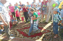 Ел саен татар халкының милли бәйрәме - Сабан туен бакчабызда үткәрү гадәткә керде. Бүген дә табигатьнең иң матур җирендә - тау башында бәйрәм иттек. Балаларыбыз Сабантуйда уйнала торган барлык уеннар да үзләрен сынап карадылар. Әмма иң күркәме милли көрәш булды. Малайлар чын күңелдән бил алыштылар һәм иганәчеләр бүләк иткән машиналарны яуладылар. Башка уеннар да бүләксез булмады. Балаларны сөендергән иганәчеләргә һәм әти-әниләргә чын күңелдән зур рәхмәтебезне җиткерәбез, эшләрендә зур уңышлар, гаилә бәхете телибез.