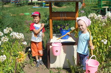Ел саен бакчабыз территориясен бизәүгә әти-әниләр һәм хезмәткәрләр күп көч куя. Быел Исрафилов Фәнил ясаган кое бакчабызга матур бер ямь биреп тора.