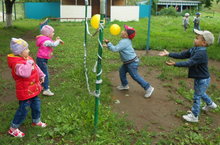 Саф һавада туплы уеннар - һәр баланың яраткан шөгыле. Волейбол алымнары белән туп тапшыру, туп тоту балалар өчен мавыктыргыч булды.