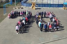 Бүген "Бөек Җиңүнең 70 еллыгы мәктәбем тарихында" акциясе уздырылды. Барлык укучылар да флэш-мобта катнашып мәктәп территориясендә 70 символы ясадылар.