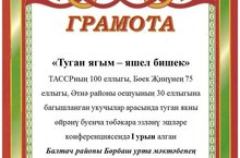 ТАССРның 100 еллыгы, Бөек Җиңүнең 75 еллыгына багышланган укучылар арасында үткәрелгән "Туган ягым - Яшел бишек" төбәкара эзләнү эшләре конференциясендә катнашкан укучыларыбыз грамоталар белән бүләкләнделәр: