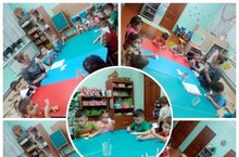 Уртанчы төркеме балалары рәсем шөгыльлендә турыпочмак,квадрат, өчпочмаклардан торган предмет сүрәтләрен ясарга өйрәнделәр.