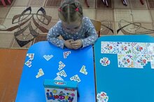 В режимных моментах дети с удовольствием складывают яркие красочные картинки из геометрических фигур.