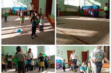 Кече яшьтәгеләр төркеме балалары физик культура шөгылендә рәхәтләнем шөгыльләнәләр./Дети группы раннего возраста с удовольствием занимаются на занятиях физической культуры.