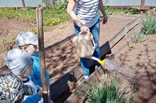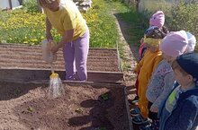 Кечкенәләр төркеме балалары белән ташкабак утырту.