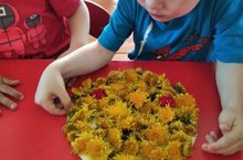 Буген, кече яшьтэгелэрнен икенче торкеме балалары тузганак чэчэгеннэн йомры икмэк ясадылар.