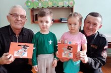 Бүген кечкенәләр төркеме балалары бакчада эшләүче абыйларны Ватанны саклаучылар бәйрәме белән котладылар. /Сегодня дети младшей группы поздравили сотрудников детского сада с праздником.