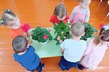 Кече яшьтәгеләрнең икенче төркеме балалары тәрәз төбендә үскән гөлләрне күзәтергэ яраталар.Аларнын матурлыкларына сокланып туя алмыйлар./Дети второй группы раннего возраста любят ухаживать за комнатными растениями. Особенно когда они цветут.