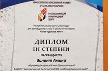 Мәктәпкә әзерлек төркеменнән Зилант Әминә мәктәпкәчә яшьтәге балалар арасында оештырылган Республикакүләм иҗади конкурста lll дәрәҗә дипломга лаек булды.
