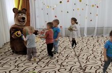 Кече яшьтәгеләрнең икенче төркеме балаларына кунакка аю килде. Балалар аю белән рәхәтләнеп уйнадылар, кунел ачтылар./ Сегодня, во вторую группу раннего возраста в гости пришел медведь. Дети с радостью играли и развлекались.
