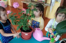 Кечкенәләр төркеме балаларына бүлмә гөлләрен тәрбияләү буенча беренче практик күнекмәләр бирү.