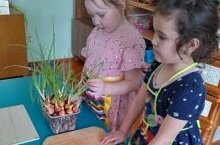 Суган уңышы җыяр вакыт җитте. Кечкенәләр төркеме балалары үзләре утыртып үстергән суганны җыеп, ашка салып ашадылар