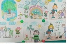 В старшей группе организовали конкурс рисунков-раскрасок на тему "Посади земле сад". Сказочные герои Эколята то же присутствовали на этих рисунках. С помощью рисунков провели беседу как эколята помогают защитить природу.