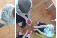Прокатывая шарик между ладонями и проговаривая речевой материал, дети массируют мышцы рук и активизируют речевые центры в коре головного мозга.