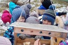 Кечкенәләр төркеме балалары саф һавага чыккач кошларны сыйлыйлар.