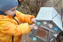 На участке детского сада открыли "Птичьи столовые".Наполнили кормушки птичьим угощением.